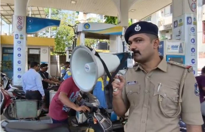 વડોદરામાં પેટ્રોલ પંપો પર પોલીસનો પહેરો, અફવાઓથી ન ગભરાવા લાઉડ સ્પીકર દ્વારા કરાઈ અપીલ