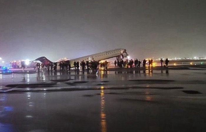 કેનેડાનું વિમાન રનવે પર ફાયર ફાઈટર ટ્રક સાથે અથડાયું