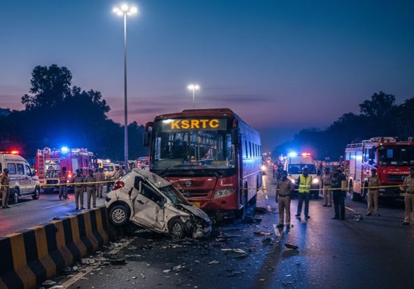 બેંગલુરુ મંદિરે દર્શન કરવા નીકળેલા 5 મિત્રોના કરૂણ મોત! કાર-બસની ભયાનક ટક્કર