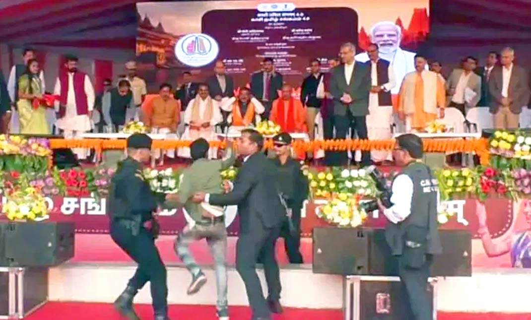 Varanasiમાં કાર્યક્રમ દરમિયાન CM યોગીની સુરક્ષામાં મોટી ચૂક, શંકાસ્પદ યુવક સ્ટેજ પર પહોંચ્યો