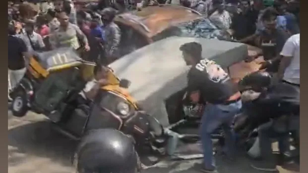 મુંબઈમાં મેટ્રો પિલરનો સ્લેબ ધરાશાયી: રિક્ષા અને કારનો કચ્ચરઘાણ, 4થી વધુ ઈજાગ્રસ્ત