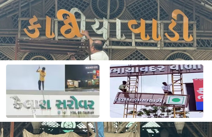 ડરના માર્યા સાઈનબોર્ડ ઢાંક્યા પાલઘર : મહારાષ્ટ્રમ...