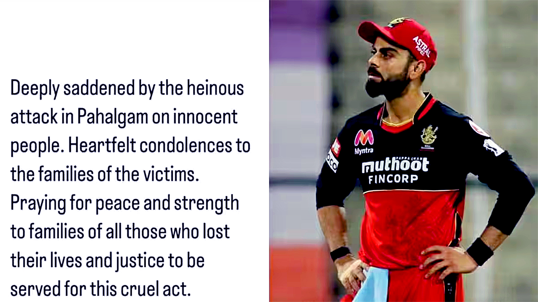 read moreવિરાટ કોહલી, નીરજ ચોપરા, સિંધુ, સાઈના નહેવાલે પહેલગામમાં થયેલા આતંકવાદી હુમલા પર શોક વ્યક્ત કર્યો