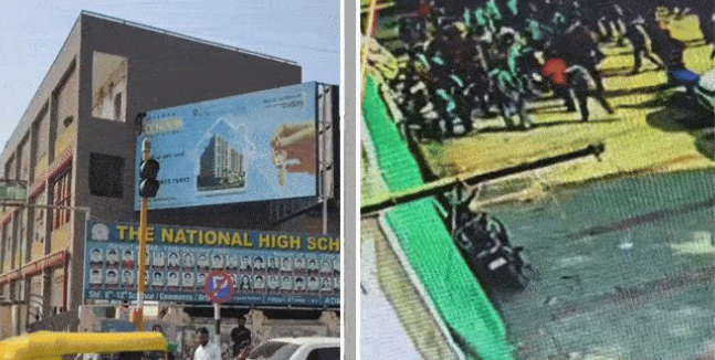 અમદાવાદમાં નારણપુરાની નેશનલ સ્કૂલ બહાર ધ...